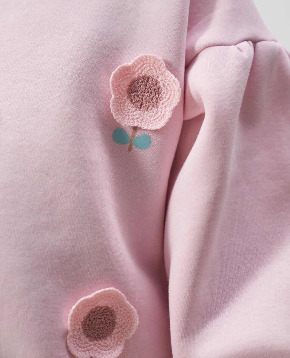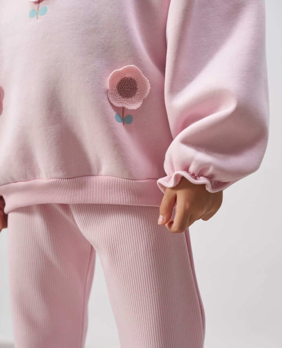 Σετ μπλούζα με 3d λουλούδια  και παντελόνι καμπάνα σε υπέροχο  ροζ απαλό χρώμα.